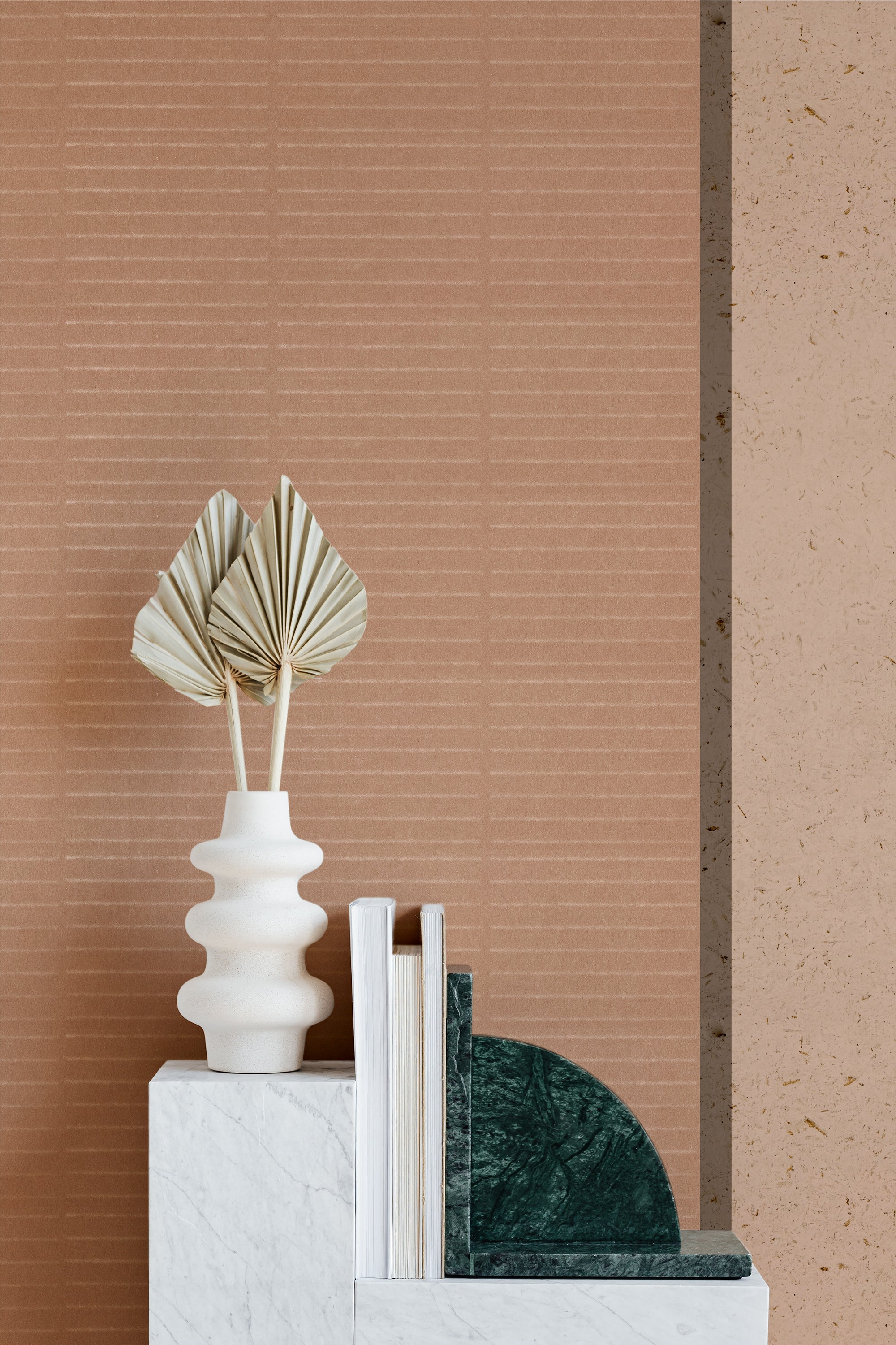 La carta fodera è un sempre un ottimo punto di partenza per applicare la carta da parati e mascherare piccole imperfezioni delle pareti, ma visto lo spessore della nostra carta da parati (370g) non è necessaria. Ovviamente la parete dev'essere il più liscia possibile per una posa perfetta.